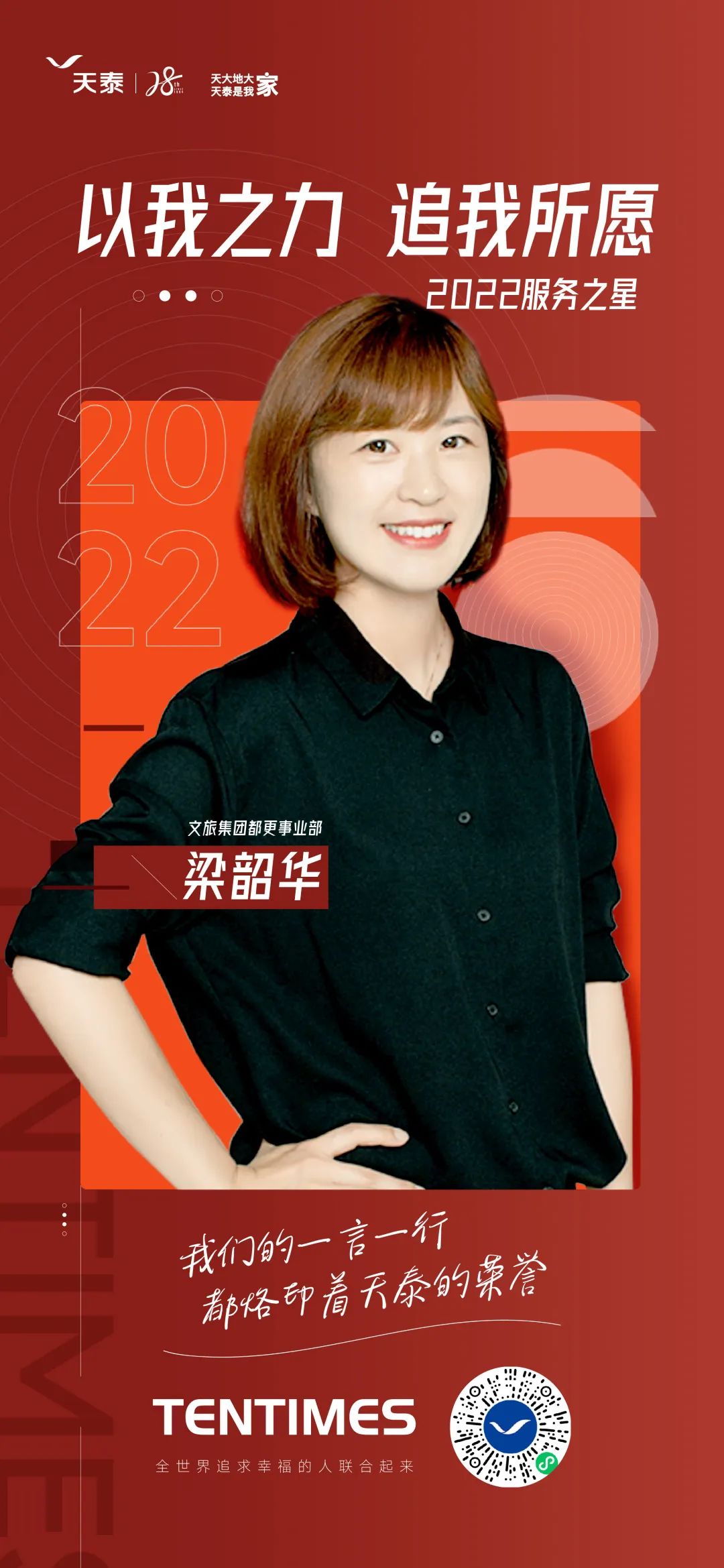 梁韶华依然记得,进入都更事业部的第一天,她就被甲方领导约谈,从那一天开始,梁韶华就知道她代表的不仅仅是自己,而是整个天泰的都更团队。她曾说:“我们每一位都更小伙伴身上,都铭刻着天泰的印记。我们的一言一行,都烙印着天泰的荣誉。” 自那天开始,梁韶华与团队开始了披荆斩棘的都更之旅。